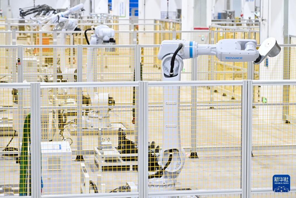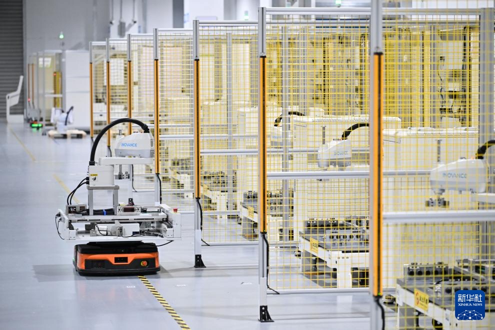 正在位于南京市江宁开辟区的汇川手艺南京从动化车间内,正在位于南京市江宁开辟区的汇川手艺南京从动化车间内,AGV小车正在搬运完成测试的机械人。正在位于南京市江宁开辟区的汇川手艺南京从动化车间内,
